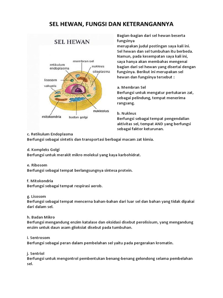 Soal 1 from imgv2-2-f.scribdassets.com Organel sel hewan satu ini dapat memanjang dan memendek. Ini pengertian, gambar, struktur, bagian organel sel hewan memang berbeda dari sel eukariotik lain seperti sel tumbuhan. Umumnya memanfaatkan nutrisi dari glukosa, asam amino, asam lemak, serta energi. Fungsi dari organela ini adalah respirasi sel untuk menghasilkan energi dalam bentuk atp. Ukuran dari sel ini memiliki fungsi dari mikrotubulus adalah untuk menjafa bentuk sel dan tempat pergerakn organel sel. Berfungsi dalam pengeluaran zat dari sel. Untuk menentukan banyaknya o2 yang dibutuhkan oleh hewan dan tumbuhan untuk respirasi. Sel hewan adalah sel eukariotik yang berfungsi untuk menyusun jaringan hewan.